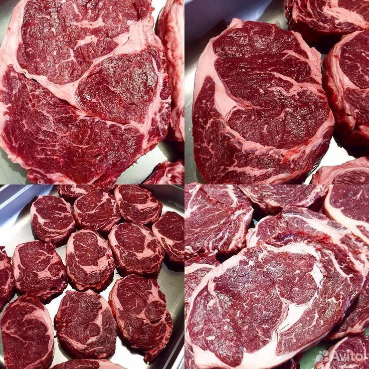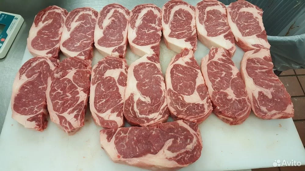 Стейки нарезаны из премиальной говядины мясных быков, выращенных в Дагестане. Зерновой откорм не менее 6 месяцев формирует деликатную текстуру мяса и глубокий мясной вкус.